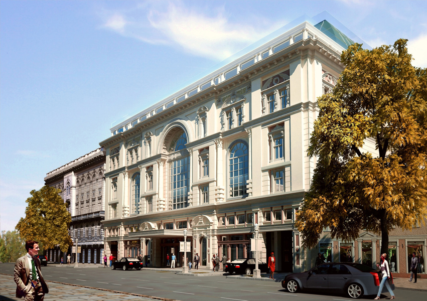 Головний фасад будівлі, розміщений лицьовою частиною споруди на вул. Катерининську, доповнюється використанням традиційних для історичного центру міста і прилеглих будівель архітектурних деталей і форм. План експлуатації поверхів: 1-4 поверхи - бутики загальною площею 7000 квадратних метрів. 5-й поверх - ресторани та розважальний комплекс для дорослих та дітей. 6-7 поверх - готельний комплекс з вишуканими апартаментами, спортивним центром і високим рівнем обслуговування. Також в бутик-готелі буде розміщений концертний хол з літніми терасами, звідки відкривається прекрасний вид на морське побережжя та історичний центр Одеси.